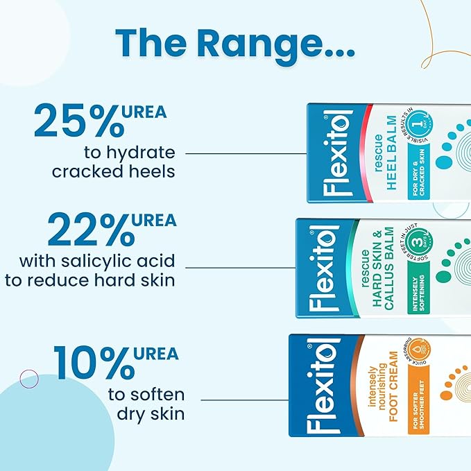 - SKINCARE SOLUTIONS: Say goodbye to dry, cracked feet, rough hands, very dry skin, & chapped lips. Help maintain healthy skin with Flexitol's range of products including lotions, creams & lip balms.