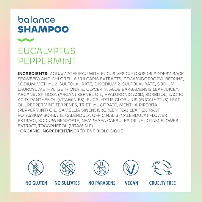 - Balancing Hydration: With coconut and avocado oils, pro-vitamin B5 and sustainably harvested Atlantic seaweed, this shampoo helps to target excess oil and moisturize ends. Safe for color treated hair
