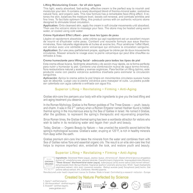 Gratiae Organics Lifting Moisture Cream with Volcanic Stone, 1.7-Ounce