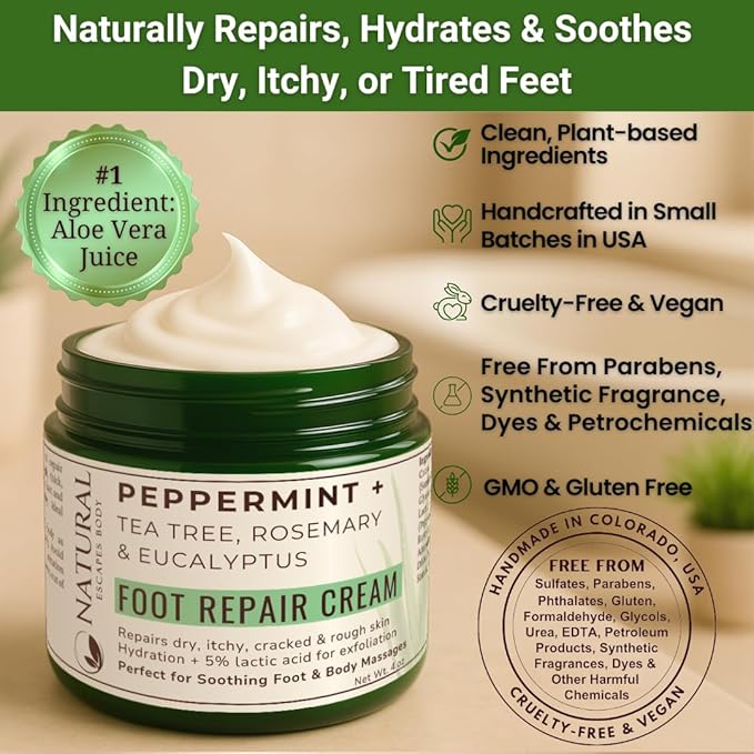 - Moisturizing Foot Cream & Cracked Heel Treatment: Deeply moisturize, nourish and repair feet with our peppermint foot lotion for dry cracked feet. Crafted with premium hydration in mind, this foot repair cream locks in moisture to keep feet looking healthy, smooth and crack-free.