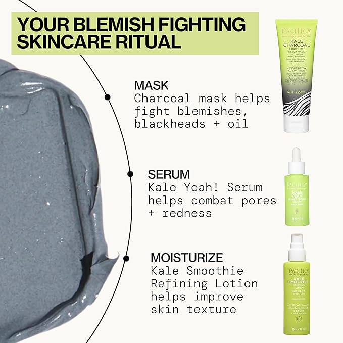 Pacifica Kale Charcoal Ultimate Detox Face Mask, Deep Pore Cleansing Clay Mask for Acne, Blackhead Removal, Blemish Control, Vegan, Purifying & Oil Control Vegan Facial Mask, 2.25 Fl Oz