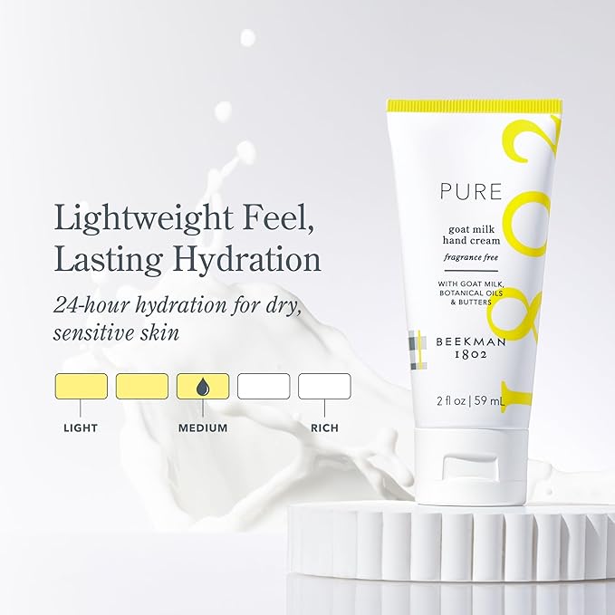 - GOAT MILK HAND CREAM - Simple pleasures don’t get much better than this simple-yet-effective fragrance-free formula, which combines botanical extracts with softening goat milk to moisturize skin.