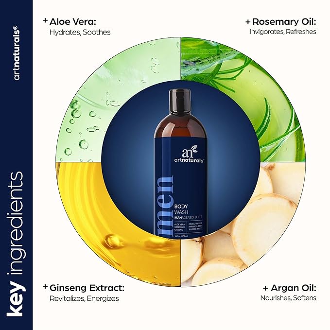 - FOR MEN - ArtNaturals Men’s Body Wash is created especially for men’s skin. It deep-cleans, softens renews and refreshes and deodorizes in an easy-to-use, lathering formula.