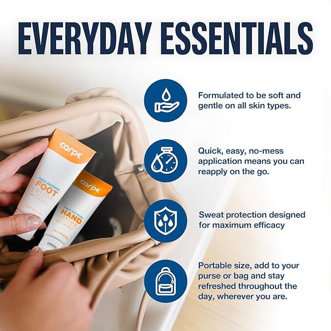 Carpe Sweat Absorbing Hand & Foot Lotion Bundle, Stop Sweaty Hands and Sweaty,Smelly Feet, Dermatologist Recommended