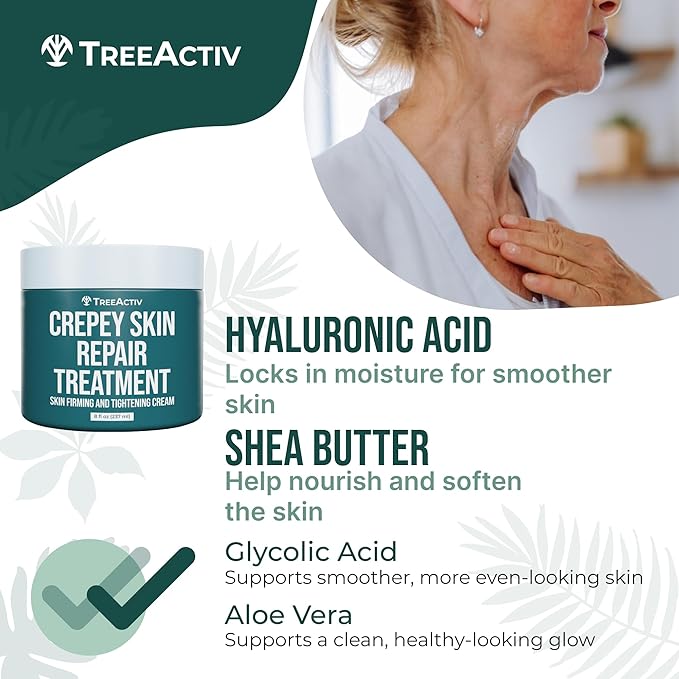 TreeActiv Crepey Skin Repair Treatment, 8oz, Firming Cream with Hyaluronic Acid & Shea Butter to Deeply Moisturize & Tighten Wrinkly Dry Crepe Skin, 500+ Uses