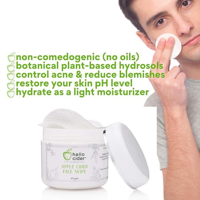 - APPLE CIDER VINEGAR BOTANICAL FACE PADS with Alcohol Free Organic Witch Hazel You asked us for ...Hello Cider in a jar with 60 cotton pads as toner cleanser & moisturizer all in one (as in our Hello Cider Acne Face Wipes)