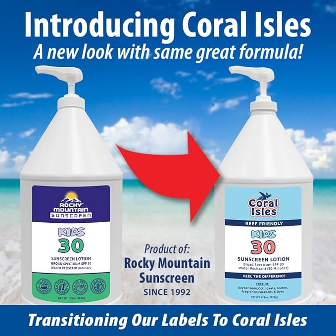 - Brand transition update - Rocky Mountain Sunscreen is now Coral Isles: We're gradually transitioning to our new Coral Isles brand. The same trusted sunscreen formula remains unchanged. You may receive either label based on current supply.