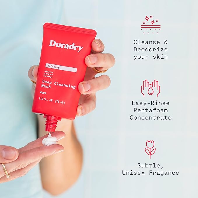 Duradry Deodorizing Body Wash for Women and Men - Odor control, Deep Cleansing, Nourishes and Moisturizes Skin, Made with Natural Ingredients - Aqua Fragrance, Travel Size - 2.5 Fl Oz (Pack of 3)