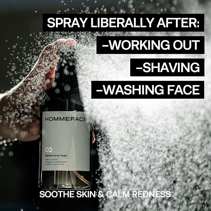 HOMMEFACE Men’s Herbal Spray Face Toner - Alcohol-Free, Hydrating & Balancing Facial Mist - Korean Skincare Technology with Witch Hazel, CICA Extract, Hyaluronic Acid, 8.45 fl oz