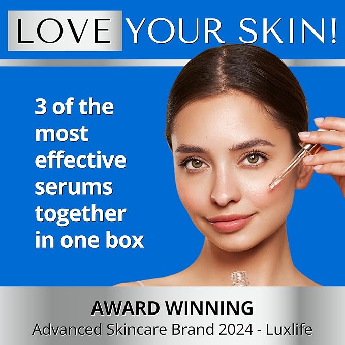 - ✅ ANTI-AGING POWER: 3 robust skin care serum in one skin care gift set that delivers visible anti-aging, brightening, plumping and firming results for healthy-looking, radiant skin. Meticulously curated to deliver unparalleled moisture replenishment and anti-aging benefits, our anti wrinkle serum for face care set offers a comprehensive solution for achieving radiant, youthful-looking skin. Together, our face serum for men and women face serum set creates a synergistic anti-aging regimen.