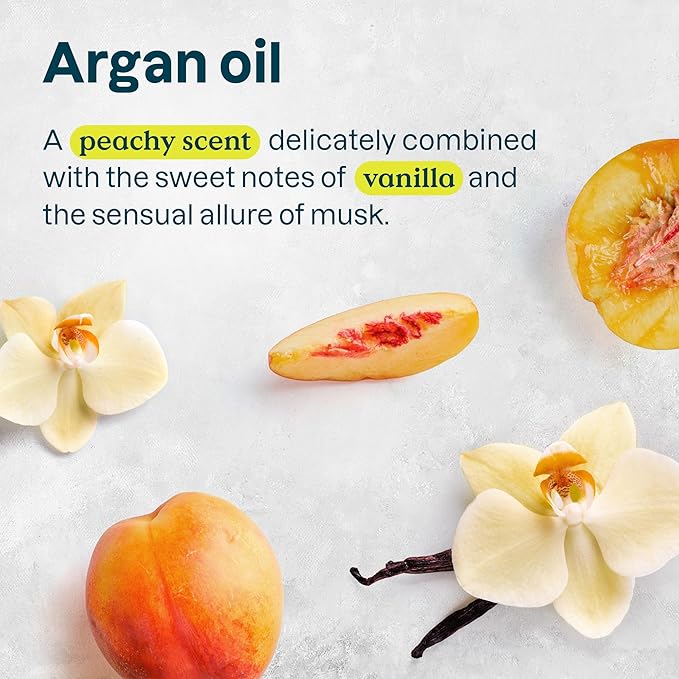 - ARGAN OIL: This shampoo for women and men has a soft and comforting scent where juicy peach blends with sweet vanilla, wrapping hair in creamy warmth.