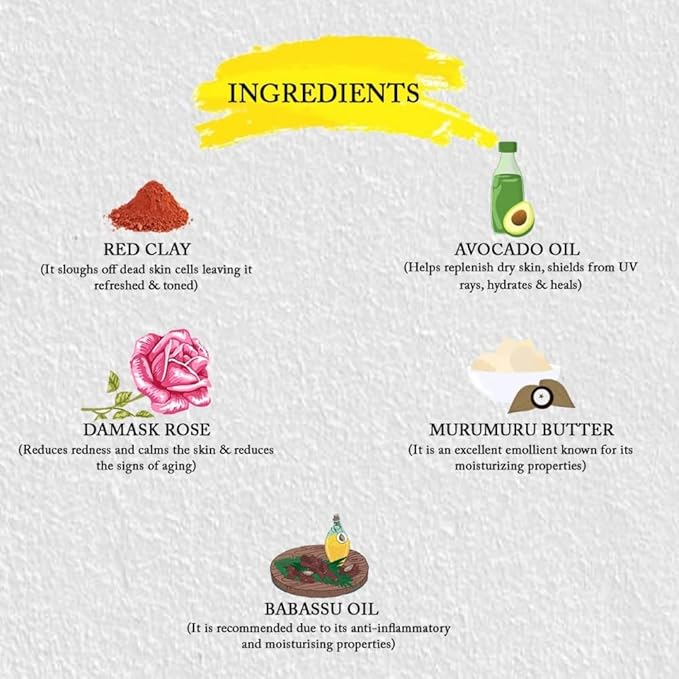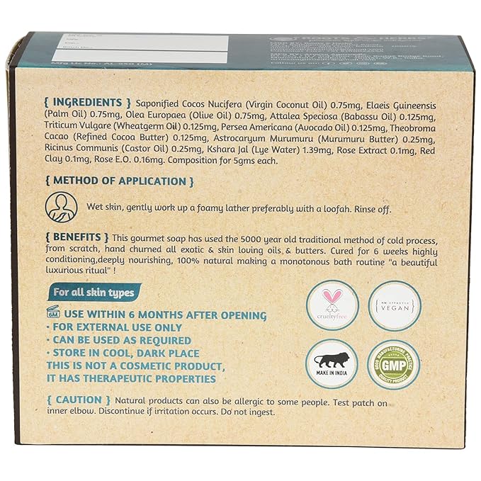 ROOTS AND HERBS Ayurvedic Bar Soap Natural Treatment 100% Vegan No Paraben No SLS No Sulphate Cleansing Red Clay & Damask Rose (Cold Process Gourmet Cleansing Bar) Soap
