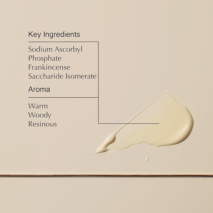 - Key Ingredients: Sodium Ascorbyl Phosphate (Vitamin C), Frankincense, Saccharide Isomerate