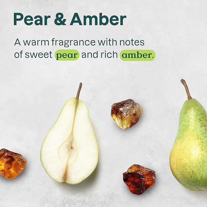 - PEAR & AMBER: This refreshing long-lasting fragrance features juicy pear with vibrant notes of nectarine and ginger for a naturally energizing and refreshing experience.