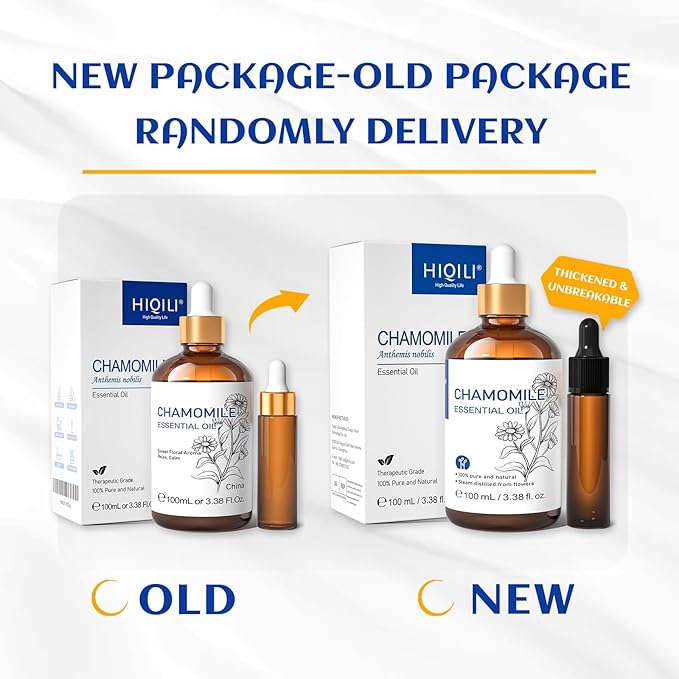HIQILI 100ML Chamomile Essential Oil, Pure & Natural Chamomile Oil for Diffueser, Skin, Soap, Shampoo - 3.38 Fl Oz