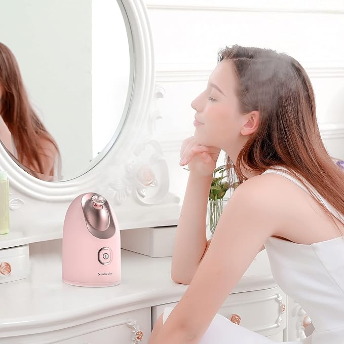 - [Untroubled and Convenient Usage] For 20 minutes, a person can enjoy a relaxing warm mist without spitting steam like as compared to other steamer with the help of home facial humidifier steamer develop full-powered steam within 30 seconds by clicking 1 key on the button. This happens after adding water to its 5.4 oz (160ml) water tank. It helps providing radiant and hydrated skin and clean the pores.