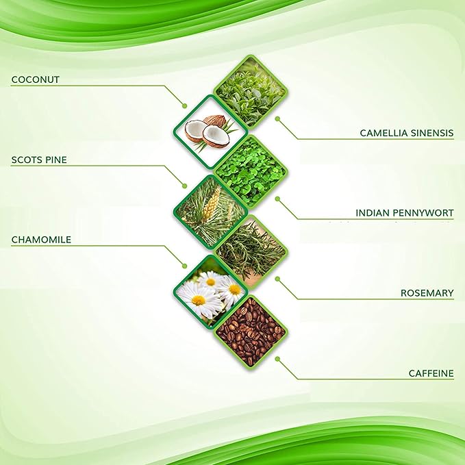 - Active Ingredients : Scots Pine, Chamomile, Camellia Sinensis, Indian Pennywort, Rosemary