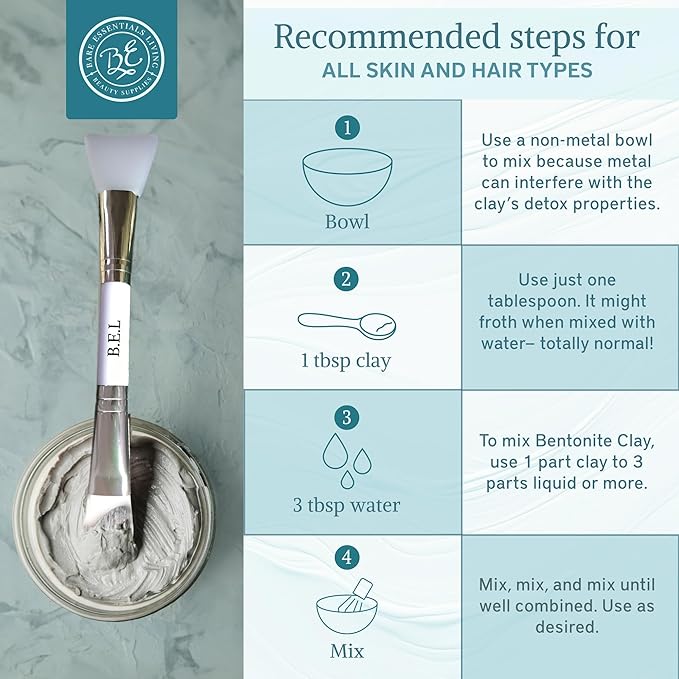 - GENTLE EXFOLIATION: Gently remove dead skin cells to reveal smoother, more refreshed skin with our high-quality bentonite clay powder. It enhances your skin’s texture and appearance, helping to reduce imperfections. Great for DIY beauty projects, it can be mixed with water, apple cider vinegar, rose water, or green tea to create customized body mask skin care. Ideal for clay bentonite, organic bentonite clay, powdered clay for seed bombs, and detox face mask uses.