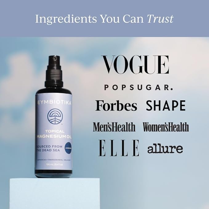 CYMBIOTIKA Topical Magnesium Oil Spray for Body, USA Made, Supplement for Leg Cramps, Muscle, Joint Health & Sleep Support, Includes Magnesium Chloride, Lavender Extract, Aloe Vera - Skin Applicator