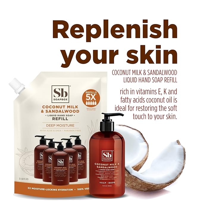 Soapbox Liquid Hand Soap Refill, Coconut Milk & Sandalwood, Vegan, Paraben Free, Moisturizing, Natural Hand Wash for Kitchen and Bathroom, 64oz Half Gallon Refill (Pack of 1)