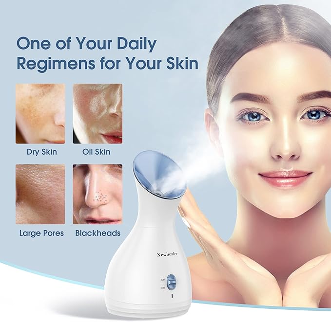 Newbealer 2in1 Facial Steamer, Hot Mist Facial Aromatherapy Humidifier Atomizer, Large Face Steamer Unclogs Pores Sinuses Moisturizing, Home Sauna Spa with Eyebrow Set (Blue, 170ml)
