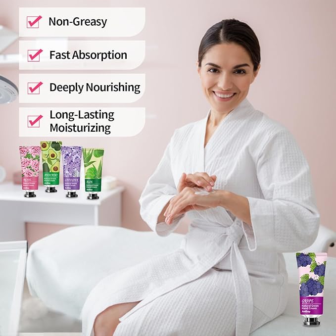 - Luxurious Natural Ingredients: Featuring fresh-cut fragrances of botanicals ,shea butter, sweet almond oil, aloe.This rich, deeply hydrating and moisturizing hand cream leaves hands smooth and moisturized.