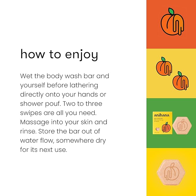 ANIHANA Body Wash Bar with Coconut Oil, Soap Free, Moisturizing, Gentle, Soft Skin Care, Refreshing Manuka Honey & Peach Scent 2.8 Oz