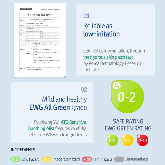 Pyunkang YUL PKY ATO Intensive Soothing Mist - Fast Calming, Refreshing, Moisturizing Facial & Body Low pH Mist Spray with Honeysuckle Flower, Sensitive Skin EWG Verified 4.9Fl.Oz