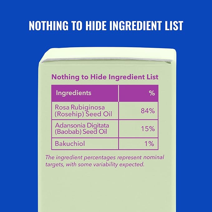 - FORMULATED FOR OILY SKIN TYPES: This oil blend is gentle enough for all skin types but can be particularly beneficial for those with oily skin. Our formula contains only the bakuchiol, rosehip, and baobab oils with no added fragrances or chemicals.