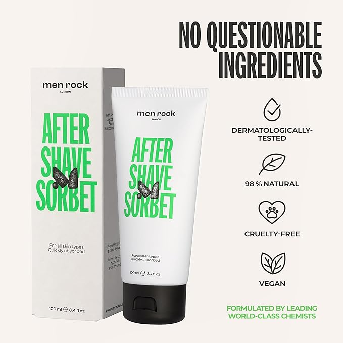 Men Rock After Shave Sorbet - Face Moisturizer - Soothing Aftershave for Men - Mens Skincare Products - Post Shave Balm - Face Lotion - 3.4 oz
