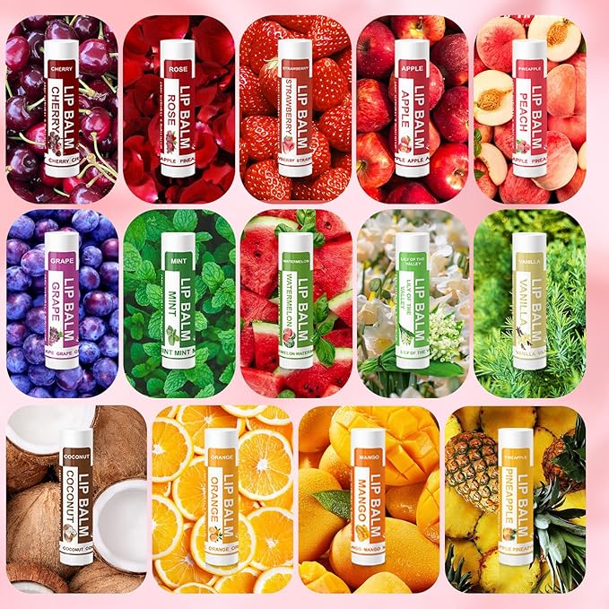 YOPELA 112 Pack Natural Lip Balm Bulk Lip Moisturizer with Vitamin E and Coconut Oil - Hydrating, Moisturizing, Soothing, and Repairing Dry and Chapped Lips Valentine's Gift - 14 Flavors - Non-GMO