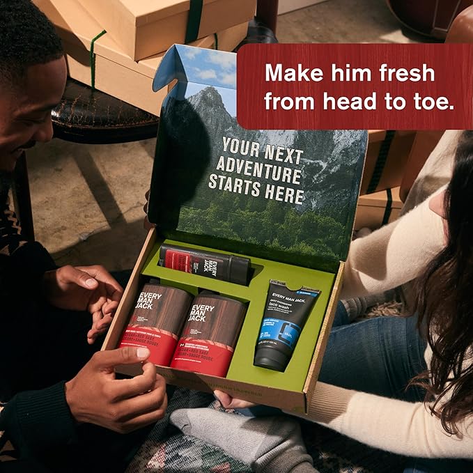 Every Man Jack Men’s Cedar + Red Sage Bath and Body Gift Set - Clean Ingredients & Cedar, Sage, and Spice Ccent - Round Out His Routine with Men’s Body Wash, 2-in-1 Shampoo, Deodorant & Face Wash