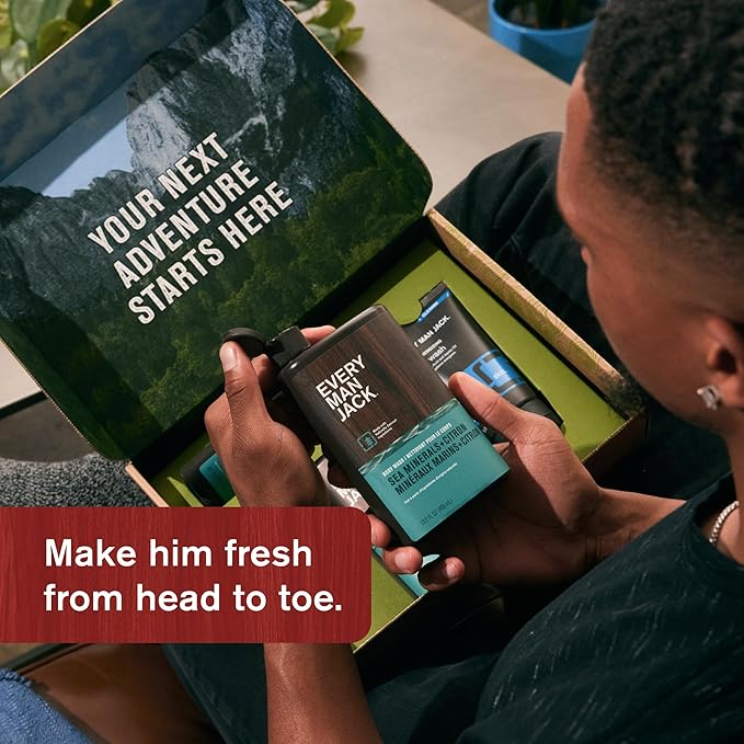Every Man Jack Men’s Sea Minerals + Citron Bath and Body Gift Set - Clean Ingredients & Sea Minerals and Citron Scent - Round Out His Routine with Body Wash, 2-in-1 Shampoo, Deodorant & Face Wash