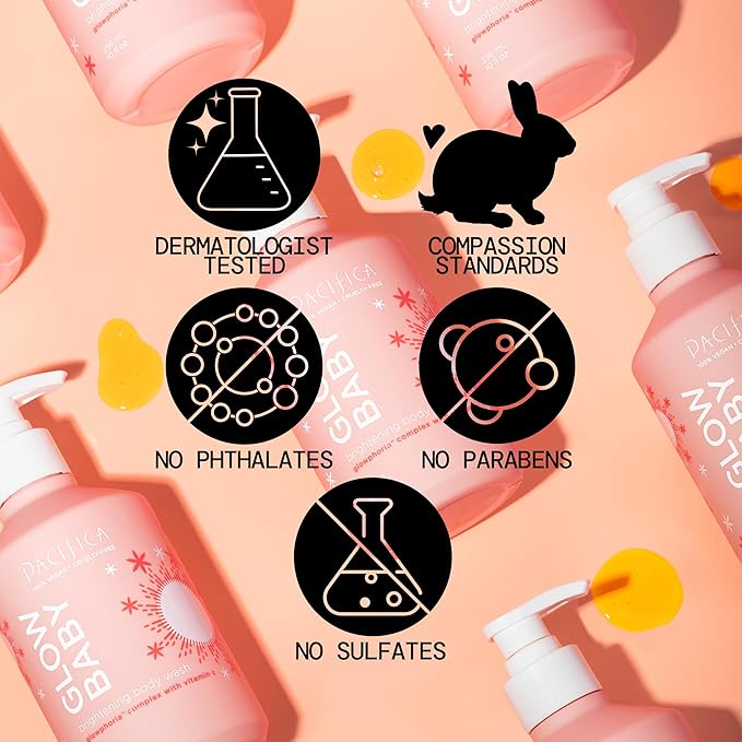 - FREE OF HARSH CHEMICALS CLEAN VEGAN BEAUTY FOR ALL SKIN: Pacifica’s Glow Baby Body Wash is dermatologist tested, vegan and cruelty-free. It’s free of parabens, phthalates, mineral oil, and silicones, so you can glow worry-free. The sunny citrus vanilla scent – from natural fragrance – makes your shower feel like a bright, happy spa moment. Suitable for all skin types, though those with very sensitive skin should patch test due to the active ingredients. Get ready to flaunt radiant, smooth skin with confidence!