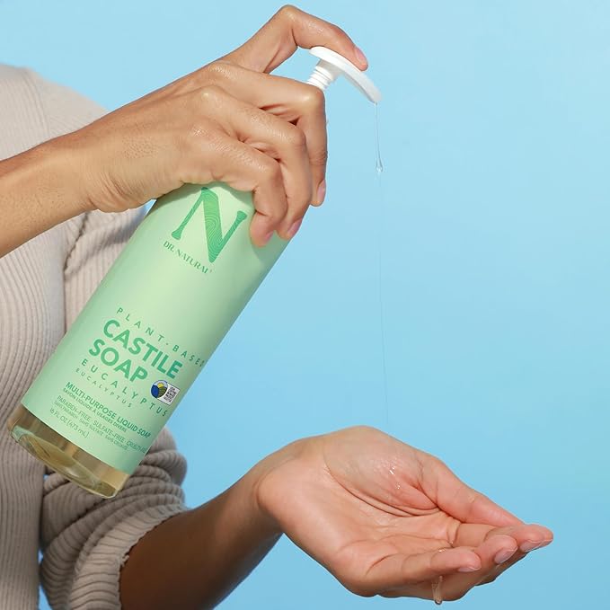 Dr. Natural Castile Liquid Soap - Multi-Use Body Wash, Shampoo and Face Wash - Hydrating Body Soap for Skin, Hair, Pets and Home - Eucalyptus - 16 oz