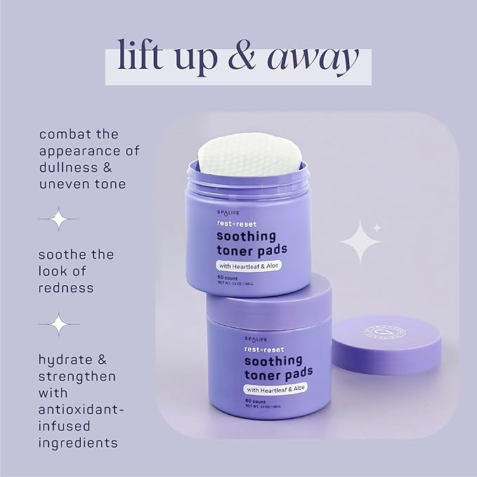 SpaLife Beauty Rest & Reset Toner Pads – for Uneven Skin Tone, Redness, Clogged Pores, Dehydrated Skin with Aloe, Heartleaf, & Purslane – Toner Pad for Face, Pre-Soaked Pads
