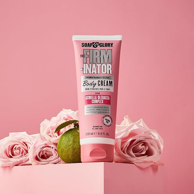 Soap & Glory The Firm-inator Body Cream - Skin Hydration Body Moisturizer with Acmella Oleracea Complex, Shea Butter Lotion & Sunflower Seed Oil - Rich Skin Firming and Tightening Lotion (8.4 Oz)
