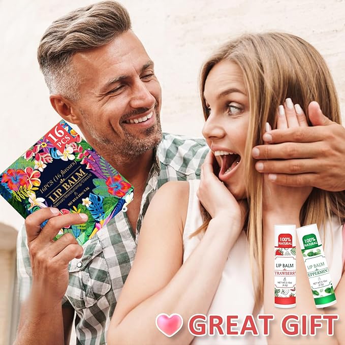 16 Pack Lip Balm, Natural Lip Balm Bulk with Vitamin E and Coconut Oil, Bulk Moisturizing Lip Balms for Dry Lips-16 Flavors