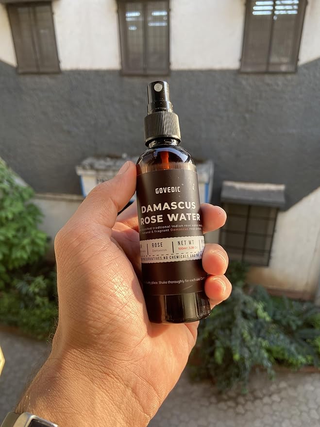 Govedic Rose Water Spray for Face Made with Damask Rose Petals, All-Natural Formula, No Dyes or Alcohol, Suitable for All Skin & Hair Types 100ml 3.38 Oz