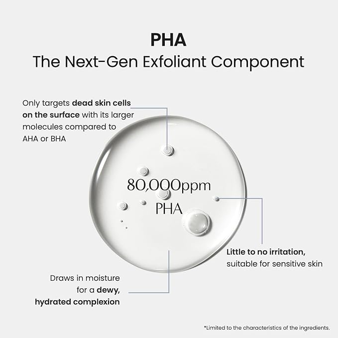 - CONTAINS 8% PHA: The larger molecular size of PHA ensures it removes only dead skin cells on the surface, making it gentle enough for sensitive skin.