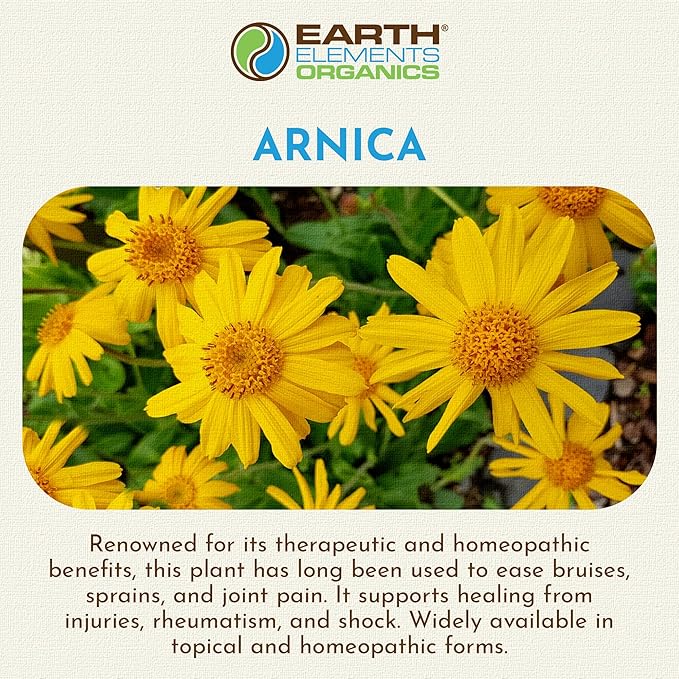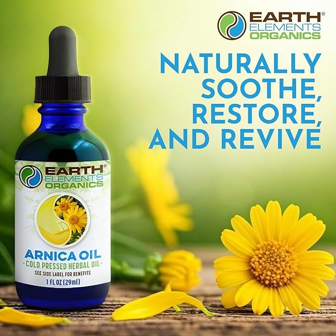 - CRAFTED WITH PURPOSE, MADE FOR YOU: At Earth Elements Organics, we believe in keeping things simple and effective. This blend of arnica herb and oil for skin is made with traditional care and contemporary methods. Sunflower seed oil enriches the formula, making it suitable for massage, face, body, or as an addition to creams and balms.