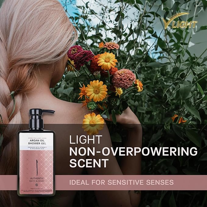 - PREMIUM ARGAN OIL SHOWER OIL - renowned for its abundant fatty acids that provide nourishment, hydration, and revitalization to the skin.