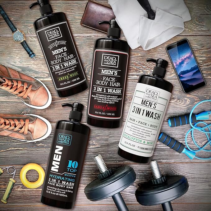 - Pure Dead Sea minerals - as a men's s face and body wash, it gently cleanses without drying the skin, providing essential nutrition. When used as a shampoo for men, it keeps hair moisturized and manageable, making it the perfect choice for the best mens body wash!