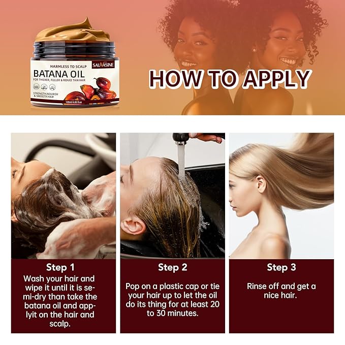 - Hair Repair and Enhanced Hair Texture: Enriched with vitamin E and Sericin Protein,deeply nourishes and repairs damaged hair, Experience a noticeable improvement in hair texture as our Batana oil adds shine and promotes healthy hair growth while reducing split ends.