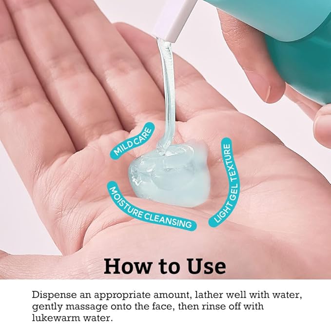 - BOUNCY JELLY TO SOFT FOAM – The cleanser transforms from a bouncy jelly texture to a mild, low pH foam upon contact with water, ensuring a thorough, moisturizing cleanse without leaving skin tight or dry. Gently massage a small amount onto damp skin, creating a soft foam that deeply cleanses pores without stripping the skin. Rinse thoroughly with lukewarm water. Embrace the purity and lightness of facial cleansing with our Gel Cleanser, your gateway to a refreshed and balanced complexion.