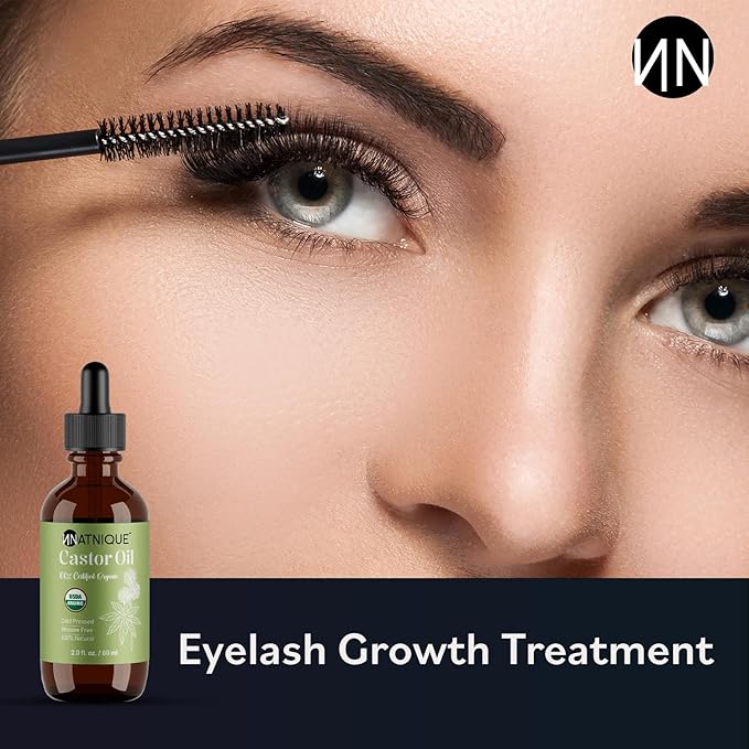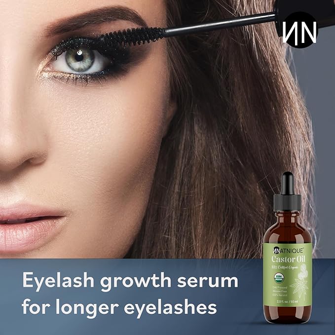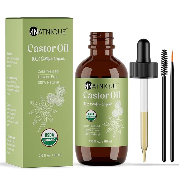 Castor Oil 2oz – USDA Certified Organic, 100% Pure Cold Pressed Unrefined Oil for Hair Growth, Eyelashes, Eyebrows & Scalp – Natural Skin Moisturizer, Lash Serum & Hair Treatment