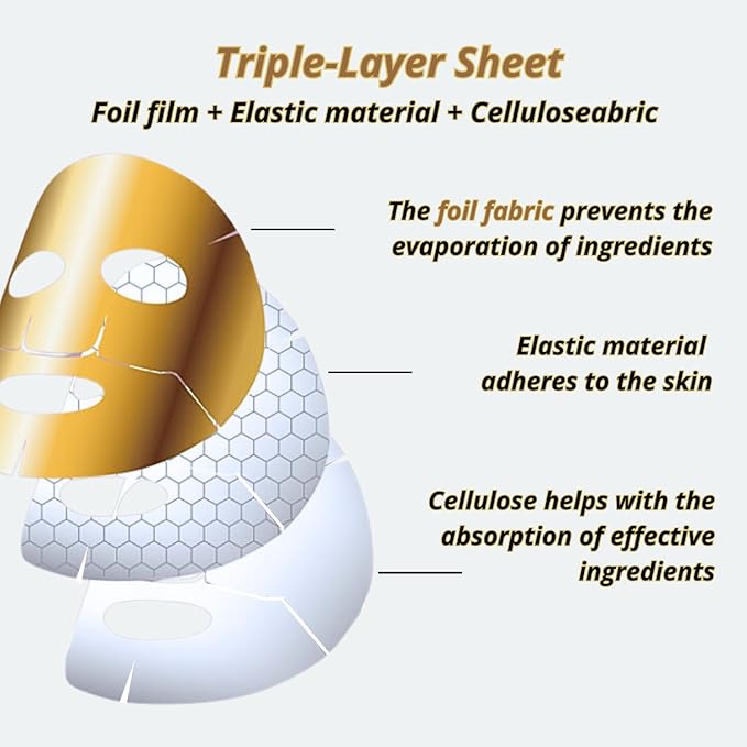- Triple-Layer Structure: Combines foil, elastic material, and cellulose to enhance skin adhesion and block external air for better absorption of ingredients.