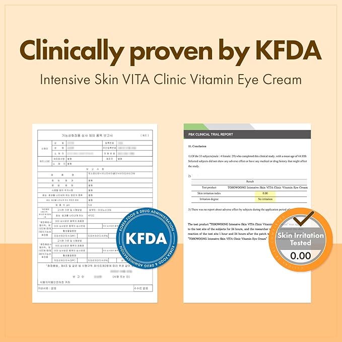 VITA Clinic Vitamin Eye Cream, Korean Skincare with 5% Arbutin, 2% Niacinamide, Hyaluronic Acid, Glutathione, Seabuckthorn Eye Serum for Fine Lines & Wrinkles, Puffiness, 15ml / 0.5 fl. oz.