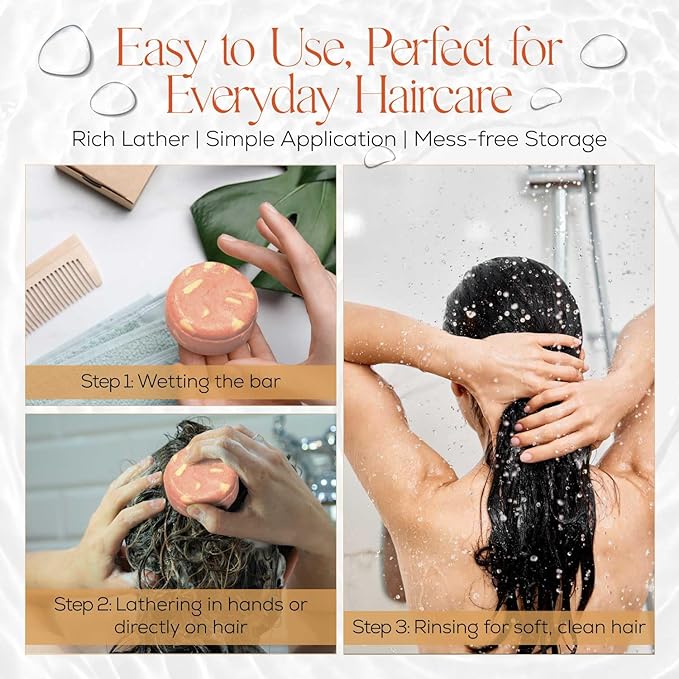 - Aromatherapy For Your Hair: Immerse yourself in a spa-like experience at home with our solid shampoo bar, which is infused with all-natural essential oils for a discreet and refreshing aroma. Discover the calming scents of rosemary, grapefruit, and eucalyptus, and find a hair growth shampoo bar that leaves your hair feeling fresh, and delicately scented.