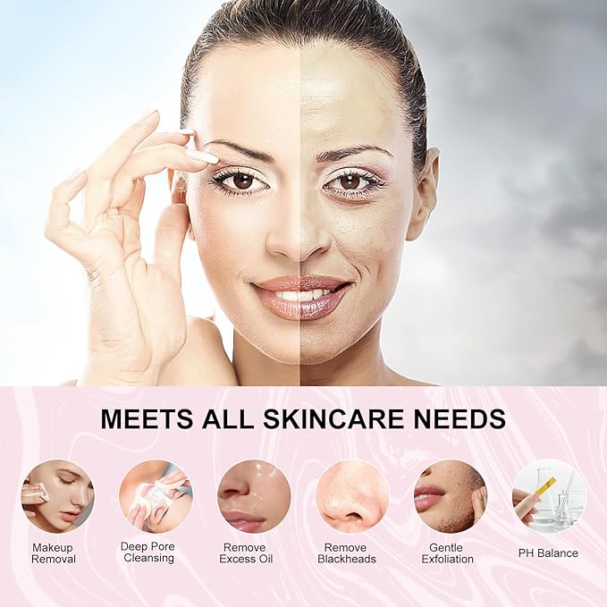 - 【Upgraded Electric Silicone Face Scrubber】Face wash brush is the most effective way to remove 99% of dirt, oil, makeup cosmetics and dead skin from your skin, it cleanses deeply, exfoliates gently, massages firmly. Using the powered facial cleansing brush for long-term will helps shrink pores, reduce blackheads and whitehead and have delicate smooth skin.